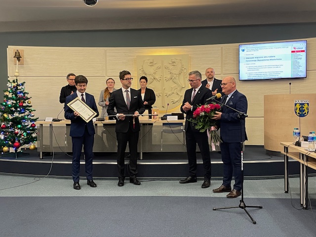 Drugim ważnym momentem sesji było wręczenie insygniów Honorowego Obywatelstwa Miasta Kutna, przyznanego pośmiertnie ŚP. Zbigniewowi Burzyńskiemu. Z rąk prezydenta Mariusza Sikory oraz przewodniczącego Rady Miasta Pawła Markiewicza insygnia odebrali synowie zmarłego – Cezary i Paweł. Tytuł został nadany uchwałą Rady Miasta 11 listopada br.