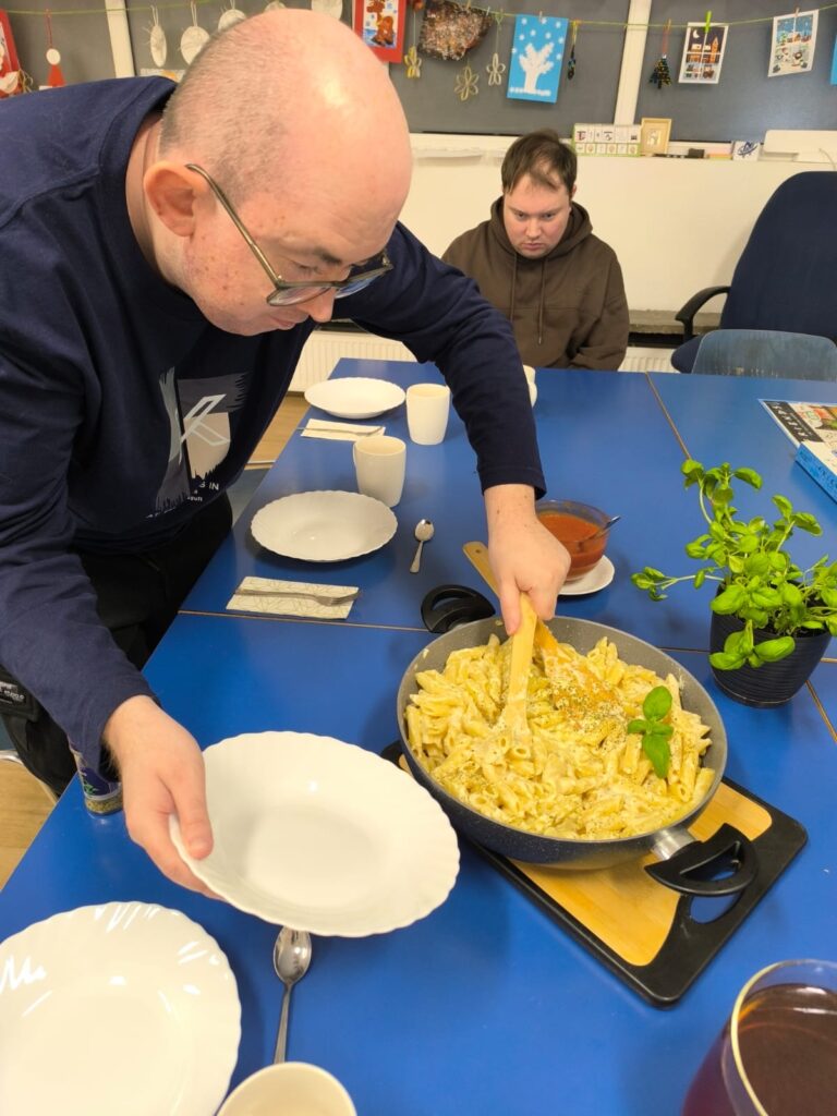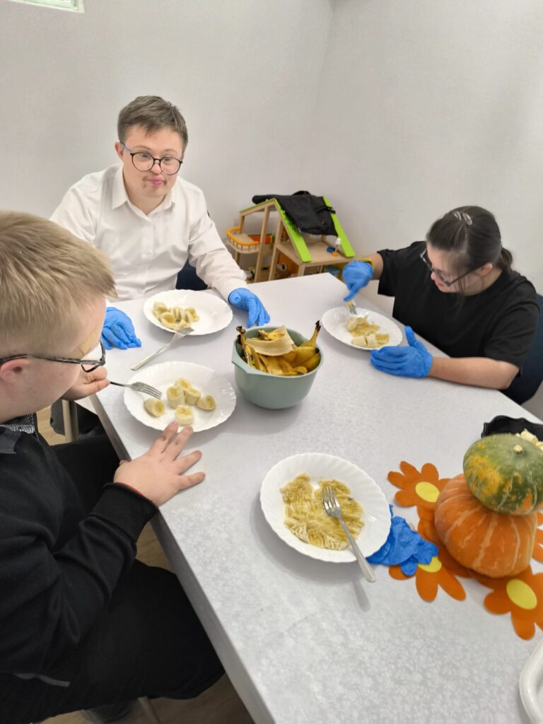 Podobnie jak wcześniej podejmowane działania, projekt był adresowany do grupy osób z niepełnosprawnością, w tym szczególnie dorosłych osób z autyzmem, niepełnosprawnością intelektualną oraz niepełnosprawnością sprzężoną. Ważną grupę beneficjentów zadania, stanowiły osoby z niepełnosprawnością, które nie są aktualnie objęte żadnym wsparciem instytucjonalnym. Wszyscy natomiast są osobami wymagającymi wysokiego poziomu wsparcia, a forma oferowanych zajęć jest odpowiedzią na szeroki zakres indywidualnych potrzeb każdego z uczestników. W gronie beneficjentów projektu, znalazły się łącznie 44 osoby, w tym zarówno osoby dorosłe, jak i uczestnicy do 18 roku życia. W ramach zadania, trwającego od marca 2025 roku do lutego 2026 roku, realizowano zajęcia grupowe w formie treningów społeczno-komunikacyjnych oraz cykl praktycznych zajęć kulinarnych, porządkowych, mających na celu zwiększenie samodzielności osób z niepełnosprawnością. Szereg działań terapeutycznych przeprowadzono w lokalnej przestrzeni naszego miasta, trenując z uczestnikami umiejętności wykonywania prostych czynności takich jak zakupy, po wcześniejszym ich zaplanowaniu, wyjście do kawiarni, pizzerii, kina, odwiedzanie wystaw plastycznych czy nawet wspólnego wyjazdu do teatru. W trosce o sprawność, zdrowie i kondycję, poszczególne grupy uczestników korzystały z różnych form aktywności ruchowych i odwiedzały w tym celu kutnowskie parki. W ofercie zajęć znalazły się także techniki plastyczne, różne formy arteterapii oraz ruchu i relaksu mających na celu poszerzanie umiejętności radzenia sobie z lękiem i emocjami. Uczestnicy projektu korzystali także ze wsparcia psychologów w formie spotkań indywidualnych. Osoby ze złożonymi trudnościami w komunikowaniu się uczestniczyły w zajęciach prowadzonych przez terapeutów ACC. Wsparcie w zakresie skutecznej komunikacji osób z niepełnosprawnością, tak by pokonywać bariery w relacji z najbliższym otoczeniem i móc wyrażać swoje potrzeby, było jednym z podstawowych zadań zakończonego projektu. Wszyscy mamy w tym zakresie jeszcze wiele do zrobienia. Stowarzyszenie „Stacja Autyzm” już planuje… kolejny krok.